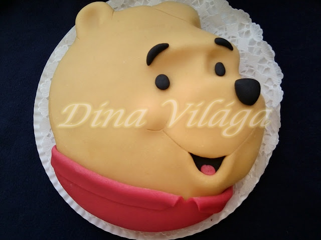 Jó barátunk kicsi fia egy éves lett! 🙂 Először Tigrisre gondoltak, aztán végül Micimaci lett, hisz mégis csak ő a főszereplő! 🙂 Mivel csak a feje kellett, maradtam a jól bevált profil ábrázolásnál, mert a 3D-s tortákat nézegetve olyannyira könnyű elrontani az arányokat, hogy kissé berezeltem tőle. Menjünk inkább tutira nem? 🙂