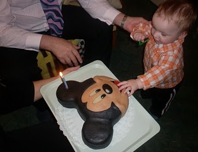 Első dolga volt lekapni az orrát, és beleharapni. 🙂 Boldogságos első szülinapot, és még százat Olivér! 🙂