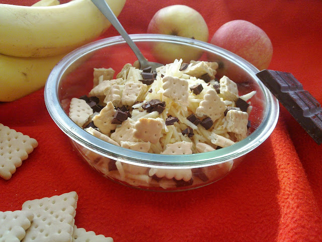 Sima reci: végy egy kistálat, bele kókuszreszelék, cukor és tejpor. Nyami. (felkészülés a másnapi tejporveszteség miatti háborúra)