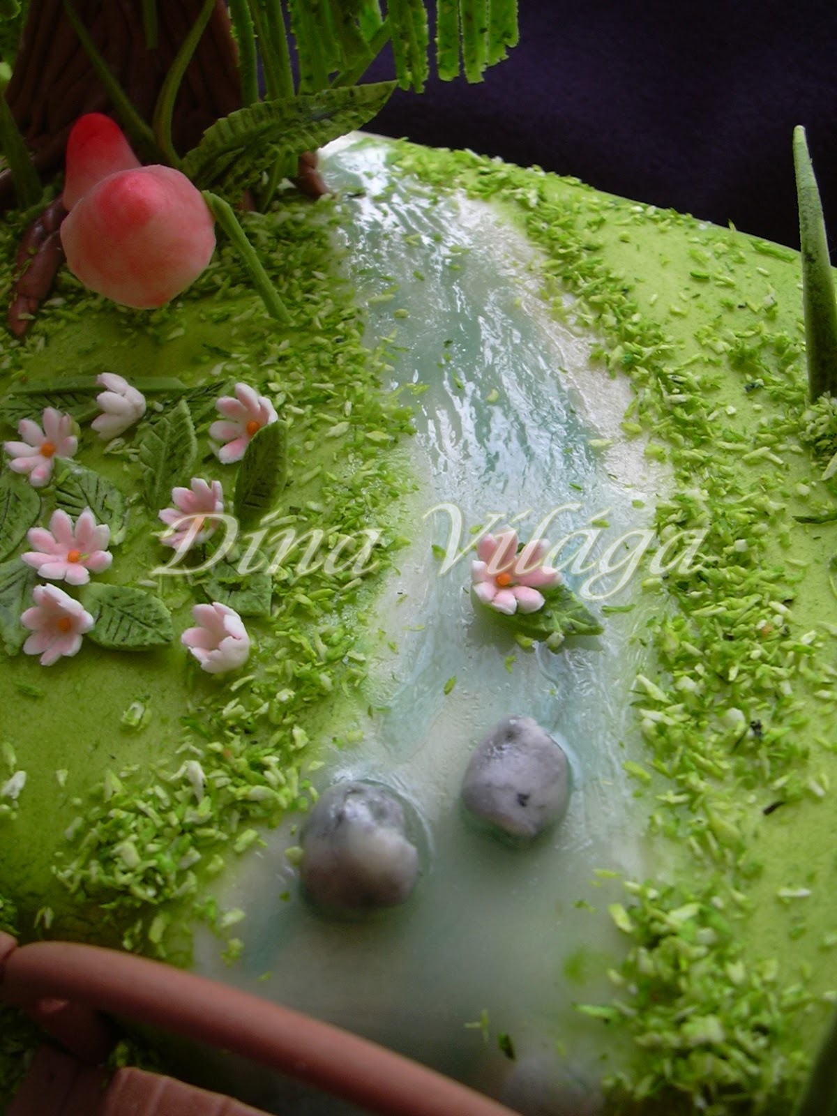 Szóval ezek azok a képek, amik a legsűrűbben bukkantak fel előttem, őket szerettem volna kicsit belegyúrni a tortába. Mindenképpen szerettem volna patakot, hidat, mini vízesést, lépcsőt, fűzfát és tündért.