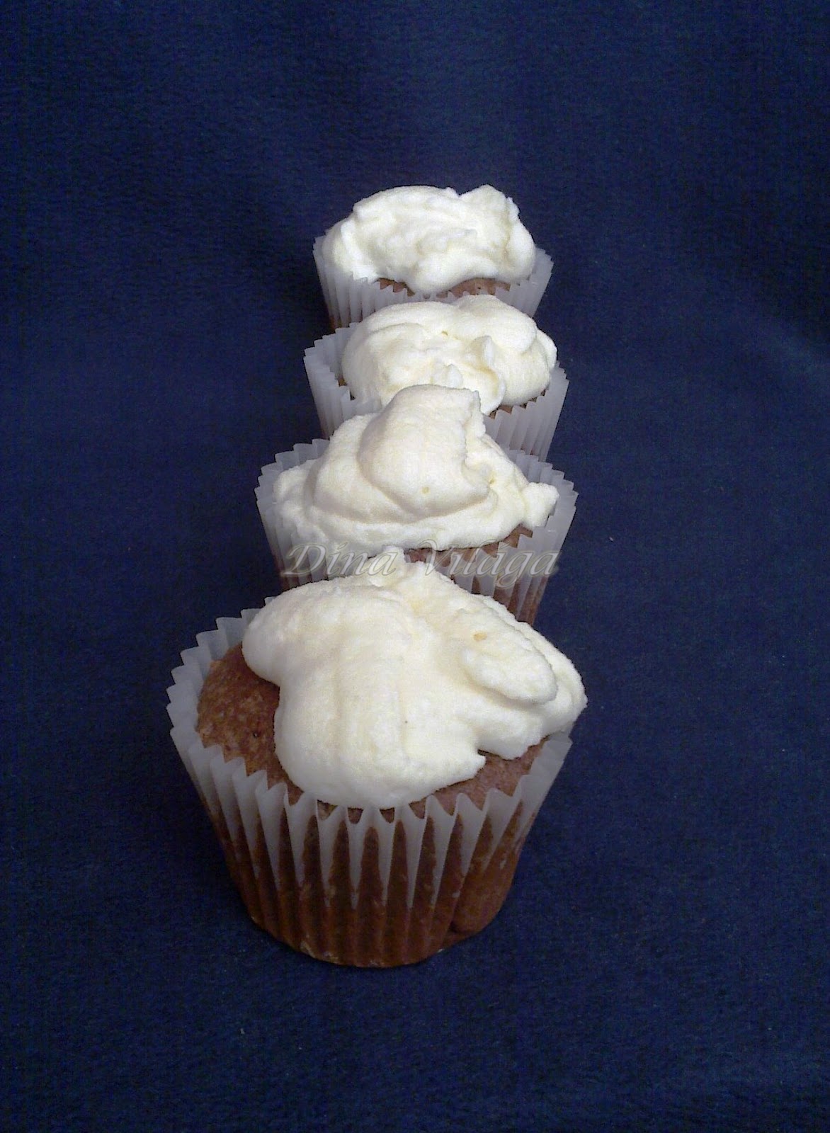Aztán kihűlt muffinok elő, habzsák élesít, csillagcső helyén, krémet belelapátol. Tésztalabdák fölé helyezkedik profi tartásban, első hangyapöcsnyi krém gyönyörű, aztán megáll. Nulla. Fogpiszkálóval apró jégkristályt szétnyom, próbál újra. Eredmény ugyanaz. Dina haja kezd szép csíkosan fehérre váltani. Sokadik tömködés, könyörgés és szúrkálódás után, mivel éreztem, hogy a zsákban kezd felmelegedni az anyag a kezemtől, kikaparni meg nem akartam, hát körömmel benyomtam a csövet a zsákba, és mellette, alatta, fölötte kinyomódó anyagot próbáltam ráapplikálni a “tündéri”-nek perpill legkevésbé sem titulált tésztagömbökre.