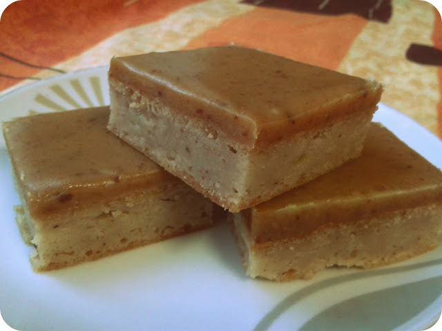 Régebben volt egy agyament ötletem, hogy a brownie-ból kihagyom a csokit, és teszek bele almát, banánt. Baromi finom, krémes állagú, édes-fanyar süti. Most úgy döntöttem, adok egy kis mélységet neki, azaz összekapcsoltam a kettőt. Hogy ne nyúlós, kissé folyós állagú krém legyen a tetején, most valamivel több cukrot tettem a karamellhez, és némi vajjal adtam neki selymes állagot és vághatóságot.