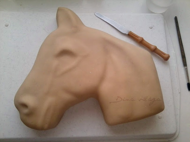 A torta nem volt nehéz, betöltés után pár dekányi kávés puncsmasszából kialakítottam a tetején a csigavonalat, majd beburkoltam marcipánnal. Aztán összekarcoltam a bemélyedést, és a torta szélét, mintha mondjuk leveles tésztából készült volna, aztán kakaóport és némi reszelt csokit szórtam a vájatba, amit vizes ecsettel tettem olyanná, mintha már megsült volna. A felszínét pedig addig mázoltam barna, pirosas és sárga ételfestékkel vékonyan, míg el nem értem a kakaós csigára jellemző színt. Az oldalát csak kakaóporral poroztam nagy ecsettel, így utólag annak is jót tett volna kevés sárgás-vöröses árnyalat.