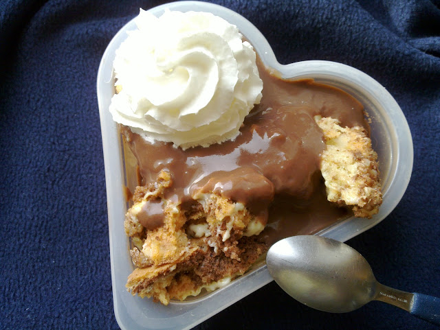 Az öntetem pedig nem pudingos-csokis, hanem vajas főzött, azaz 10 dkg vaj, 10 dkg cukor, 2 evőkanál kakaópor, 1 evőkanál liszt, 1,5 dl tej, végül 0,5 dl erős rum összefőzve.