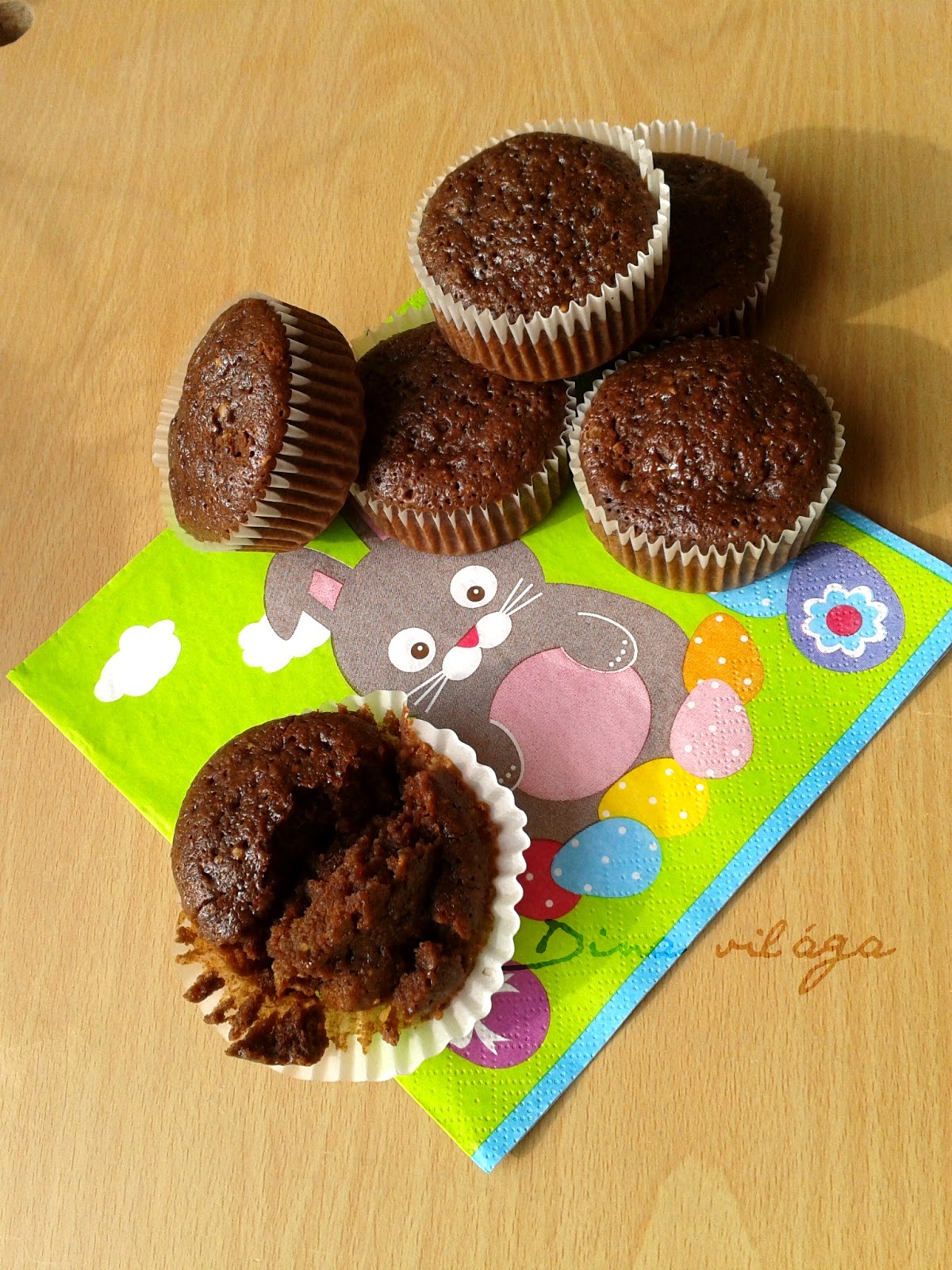 Annyira bejött, hogy később újrázni szerettünk volna, de nem akartunk annyit várni a sütésre, így azt találtuk ki, hogy muffinformába pakoljuk. Egy pindurit itt változtattam kíváncsiságból. Az egyik tortám után maradt 4 evőkanál őrölt grillázsom, azt beletettem, viszont, hogy érződhessen, a kakaóport kihagytam. Nagyon-nagyon finom lett, omlós, lágy, hamar el is kapkodtuk, de következőnek marad a sötét, intenzíven csokis-kakaós verzió, az az igazi! :))