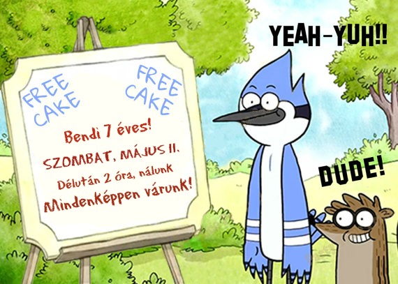 Költséghatékony szülinapi meghívó gyártás. Végy egy jó képet kisfiad legkedvesebb mesefiguráiról, ahol mindkettő látszik, lehetőleg az “Ingyen torta” epizód közben, a rajta lévő szöveget Skip szülinapjáról írd át a saját kölyködére, és küldd el minden emilre (e-mail), amit családon belül ismersz.