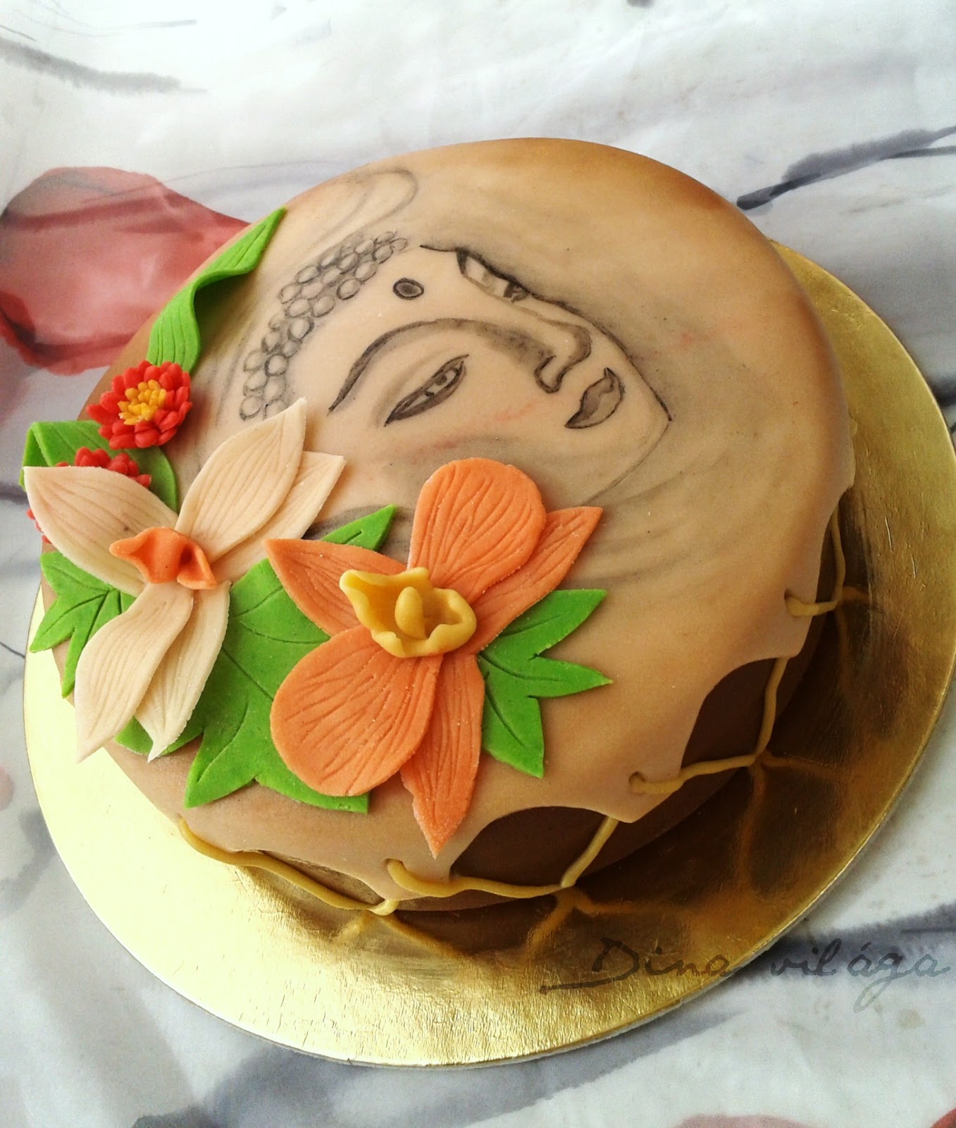 Múlt héten nekem is volt egy Buddhám, ezért kíváncsian jöttem, hogy Te hogyan oldottad meg. Nagggyon jóóól!Jók ezek a nem-mindennapi témák, egy kicsit muszáj kikupálódni, a témának utánajárni, ezért most jöttem rá (amit végülis tudtam, csak annyira nem figyeltem eddig fel rá), hogy többféle arccal létezik Buddha. Nekem erről a szóról az a kis duci ugrott be, de én is ezt a “szebb-Buddhát” gyártottam le (illetve csak halvány kísérletet tettem rá).Aztán a tavirózsa és a lótuszvirág közti különbséget is tudom már! 🙂 (Amit elkészítettem K2-ből, de ugyanolyan sikerrel, mint Te, ezért már nem is került a tortára)Szóval, nagyon jól megoldottad! 🙂