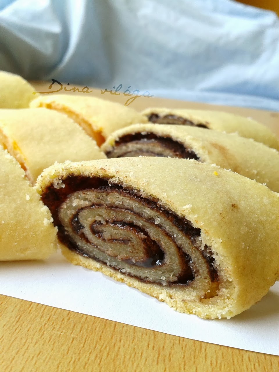 1 rúd kakaós, 1 rúd lekváros, és 2 rúd mogyoróvajas-kakaós lett belőle. Feltekertem őket, olajozott gáztepsiben 180°C-on 20-25 perc alatt átsül. Ne hagyjuk megbarnulni.