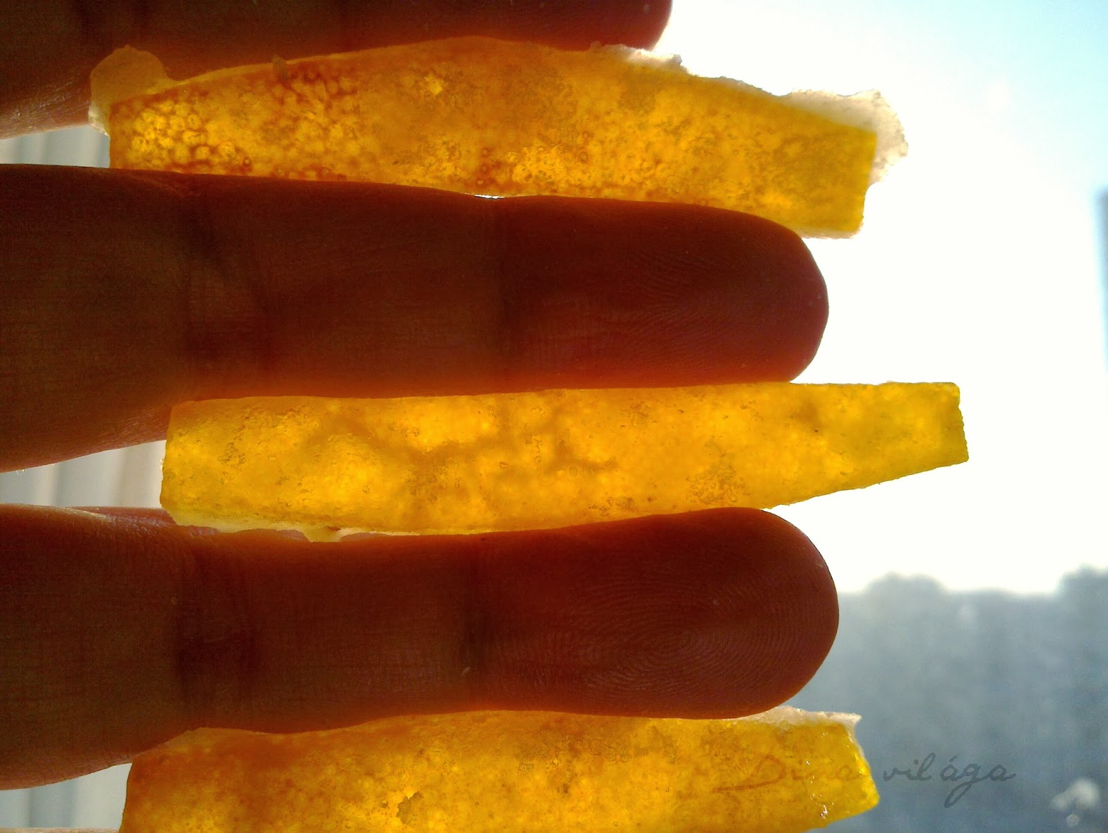 Így készítsünk tehát napfényben életre kelő kristályköveket, akarom mondani cukrozott narancshéjat: