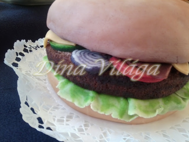 Jóval nagyobb az eddigieknél, hát rajzoltam egy új pacifejet. A festés is új dolog volt, abban a tekintetben, hogy most nem kakaóporral (mert azt hiába melegítem kevés vízzel, akkor is szemcsés marad, meg nem az igazi), hanem színkeveréssel. Facebook-on, ez egyik kis csoportban beszélgettünk erről, ki is próbáltam a zöld-piros keverést. Ám nekem valami borzalmas mocsárszínt hozott ki, hiába próbálgattam az arányokat, aztán beugrott a drága jó rajztanárom még általánosból, aki buzgón próbálta a fejünkbe verni a komplementereket, meg egyéb ilyen dolgokat, szóval hogy a színkörben minden egymással szemben álló szín keveréke barnát ad. Így hát fogtam a kis mocsárszín festékemet és kevertem bele még sárgát, pirosat, kéket, lilát, meg még zöldet is, hogy kevésbé legyen pirosas, és valóban, egy nagyon szép csokoládé színt kaptam. Ami persze felhordva a bézs marcipánra már kevésbé volt sötét csokiszín, de nekem így tetszett nagyon, nem is bántottam.